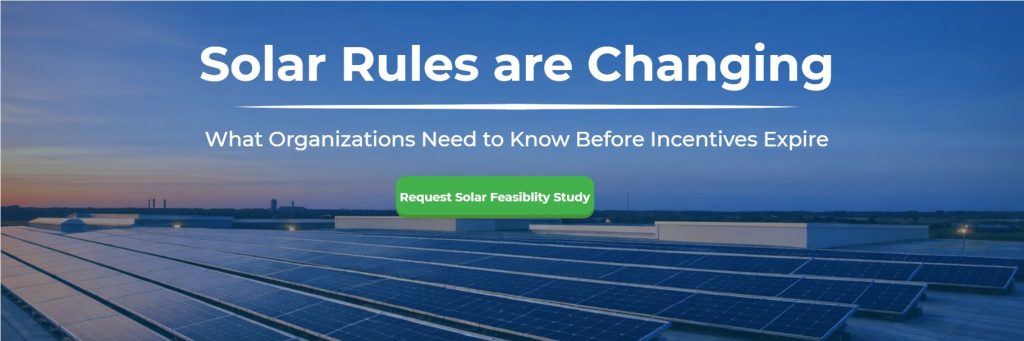 For organizations considering solar, starting your review and approval process NOW is the best way to ensure eligibility for these tax credits.